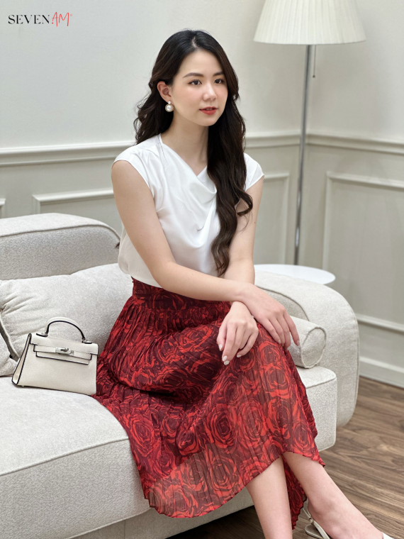 THÔNG TIN SẢN PHẨM: - Dòng hàng: Chân váy xếp ly xoè - Chất liệu vải: Voan - Thông số size: M, L, XL - Màu sắc: Đỏ - Xuất xứ: Thời trang Seven.AM