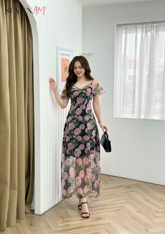 THÔNG TIN SẢN PHẨM: - Dòng hàng: Đầm maxi - Chất liệu vải: tơ - Thông số size: S, M, L, XL, XXL - Màu sắc: họa tiết lá xanh hoa hồng nhiệt đới - Xuất xứ: Thời trang Seven.AM