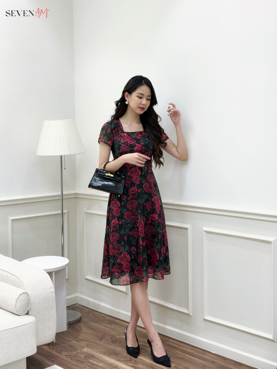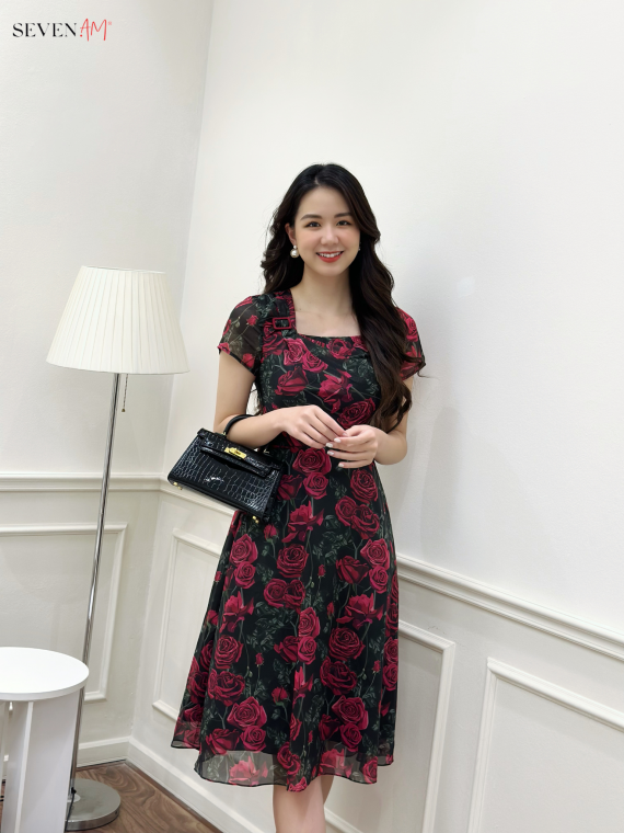THÔNG TIN SẢN PHẨM: - Dòng hàng: Đầm xoè - Chất liệu vải: Voan - Thông số size: S, M, L, XL, XXL - Màu sắc: Đen pha hoa hồng đỏ - Xuất xứ: Thời trang Seven.AM