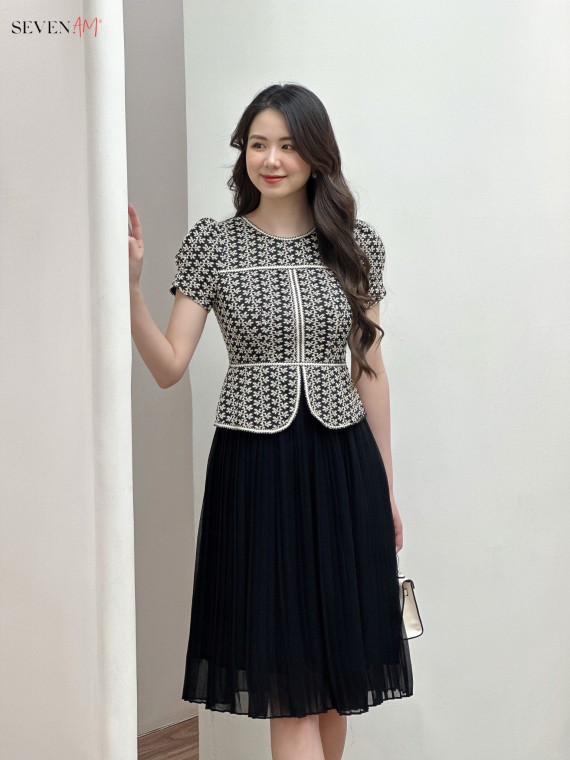 THÔNG TIN SẢN PHẨM: - Dòng hàng: Đầm xoè - Chất liệu vải: Trượt hàn phối ren - Thông số size: S, M, L, XL, XXL - Màu sắc: Đen pha trắng - Xuất xứ: Thời trang Seven.AM