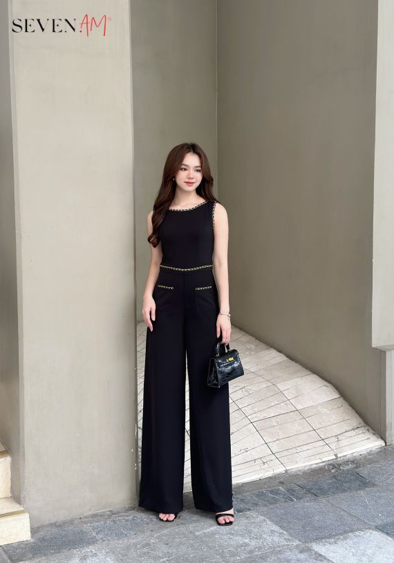 THÔNG TIN SẢN PHẨM: - Dòng hàng: Jumpsuit - Chất liệu vải: Trượt chéo Hàn - Thông số size: M, L, XL - Màu sắc: Đen - Xuất xứ: Thời trang Seven.AM